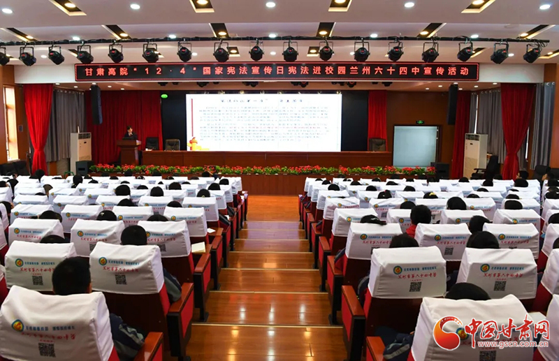 中國甘肅網(wǎng)12月4日訊(本網(wǎng)記者 李紅軍)12月4日是第七個“國家憲法日”。今天下午,甘肅省法院少年法庭的法官走進蘭州市第六十四中學,開展以“深入學習宣傳習近平法治思想、大力弘揚憲法精神”為主題的憲法進校園宣傳活動。該校300余名師生代表在學術(shù)報告廳聆聽了宣講報告,兩名基層法院人民陪審員應邀參加了活動。
