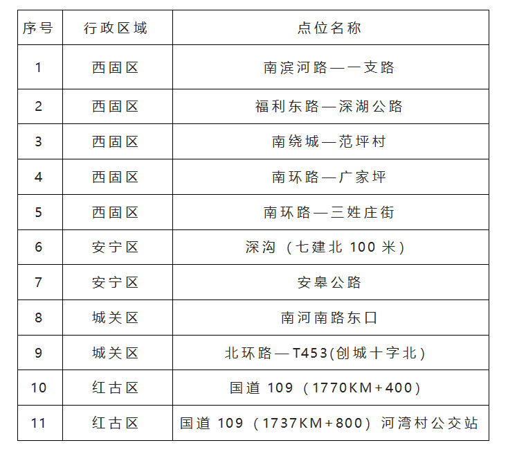 以下為11處非現(xiàn)場(chǎng)執(zhí)法系統(tǒng)抓拍點(diǎn)位: