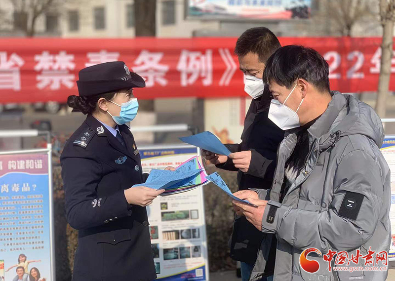 靈臺(tái)縣禁毒辦民警向轄區(qū)居民講解禁毒、防毒知識(shí)