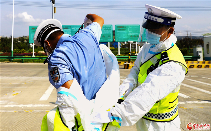連日來(lái),隴南市禮縣持續(xù)出現(xiàn)高溫天氣,禮縣公安局交警大隊(duì)執(zhí)勤民警身著防護(hù)服,堅(jiān)守在道路一線戰(zhàn)高溫,斗酷暑,一手抓常態(tài)化疫情防控,一手抓道路交通安全。