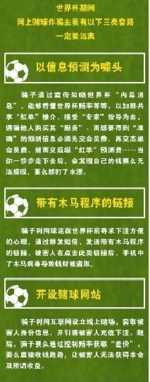 記者了解到,世界杯期間往往是賭球詐騙的高發(fā)期。多地公安機關也發(fā)布提示信息,呼吁網(wǎng)友遠離網(wǎng)絡賭球。