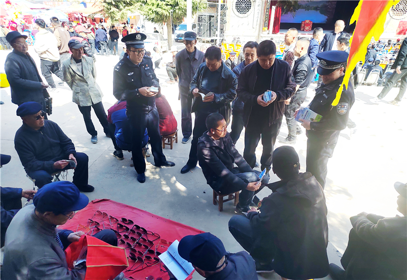 據(jù)悉,開春以來,甘谷縣鄉(xiāng)村群眾活動多種多樣,各基層派出所民警也隨著群眾活動的開展“忙”了起來,結合“三抓三促”行動工作,深入群眾中間,利用鄉(xiāng)村廟會、鄉(xiāng)鎮(zhèn)集會、游園賞花等人流量較多的有利時機,積極開展宣傳活動。