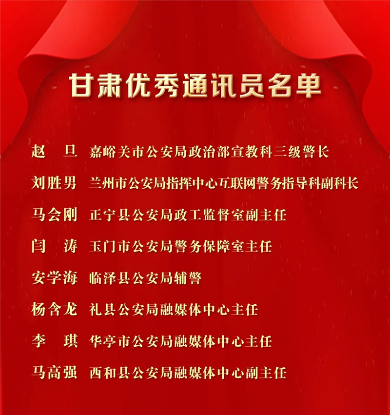 甘肅8名民輔警獲評(píng)人民公安報(bào)“2022年度優(yōu)秀通訊員”