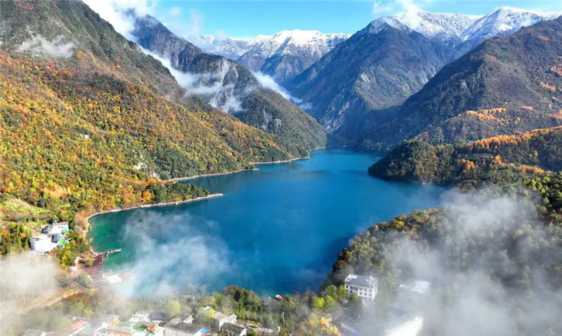 晨光初露,官鵝溝的薄霧尚未散盡,澤蕩湖面倒映著如黛青山。游客們紛紛舉起手機(jī),將這幅山水畫卷定格,而一支巡邏警隊(duì)的藏藍(lán)身影,也悄然融進(jìn)了這水天一色中。