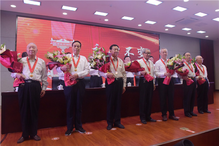 向老黨員代表頒發(fā)“光榮在黨50年”紀念章。