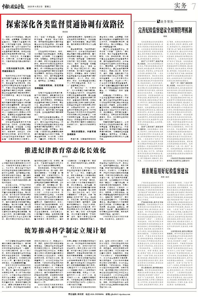 中國紀檢監(jiān)察報:探索深化各類監(jiān)督貫通協(xié)調(diào)有效路徑