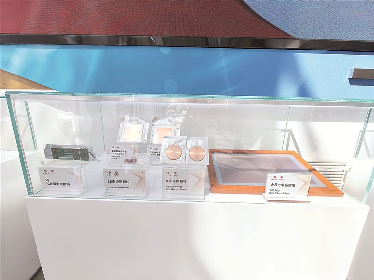 輕元素量子材料交叉平臺(tái)陳列的大尺寸單晶銅箔等材料。左翰嫡 攝