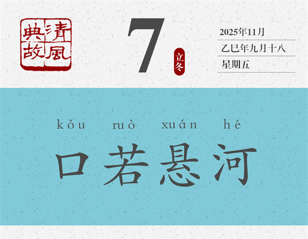 《世說(shuō)新語(yǔ)》將王衍此語(yǔ)收入“賞譽(yù)”類,文字幾乎原文照抄了《晉書·郭象傳》里的話:“王太尉云:‘郭子玄語(yǔ)議如懸河寫(同“瀉”)水,注而不絕。”王太尉即王衍,郭子玄即郭象。“如懸河瀉水”是什么意思?一,有話可說(shuō),而且有說(shuō)不完的話;二,口才非常好,凡是心里能想到的,嘴里都能說(shuō)出來(lái)。三,說(shuō)話很有氣勢(shì),不哼哼哈哈,不磨磨嘰嘰,也不“這個(gè)這個(gè)”“那個(gè)那個(gè)”地沒(méi)完沒(méi)了。后世即以“口若懸河”為典,形容一個(gè)人表達(dá)能力超群,說(shuō)起話來(lái)滔滔不絕。