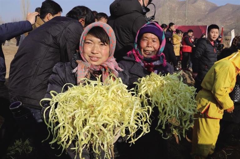 “今年地頭價(jià)每斤15元,這還是頭一回。”勞動(dòng)間隙,村民們議論著韭黃的價(jià)格,隨后把一筐筐金燦燦的韭黃放在商販的稱上,接著到手的便是一疊疊鈔票。“給韭黃抖土感覺就像數(shù)錢一樣,嘿嘿,麥草下的‘黃金’今年又豐收了。”村民們你一言我一語,爽朗的笑聲回蕩在冬日的余暉里。