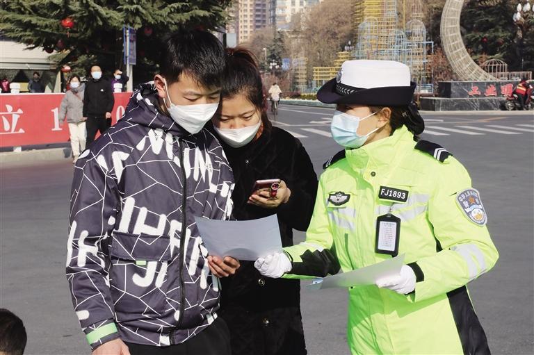 交警發(fā)放文明出行宣傳資料 葛 強(qiáng) 攝