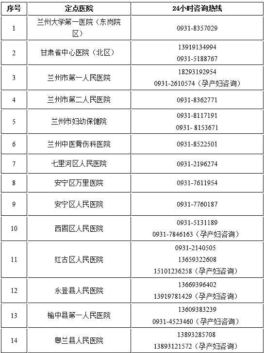 •蘭州市域“非綠碼”定點(diǎn)醫(yī)院24小時(shí)咨詢熱線•