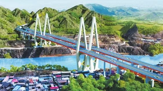 大橋主跨328米,雙向八車道,為半漂浮體系組合梁斜拉橋。橋塔采用分離式雙鉆石四索面“雙子星”新型結構,北塔高133米,南塔高152米,是國內Ⅷ度以上地震烈度區(qū)最大跨度分幅聯(lián)塔斜拉橋。