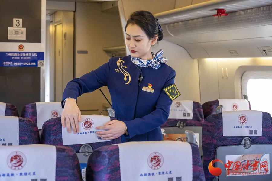 中國(guó)甘肅網(wǎng)12月27日訊 隨著聯(lián)調(diào)聯(lián)試、運(yùn)行試驗(yàn)等各個(gè)關(guān)鍵節(jié)點(diǎn)順利完成,銀蘭高鐵中蘭段已進(jìn)入開通倒計(jì)時(shí),銀蘭高鐵乘務(wù)團(tuán)隊(duì)也驚艷亮相。
