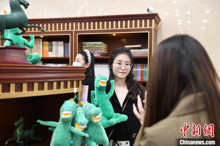 3月26日,甘肅蘭州,絲路旅游持續(xù)升溫,甘肅省博物館推出的文創(chuàng)產(chǎn)品“綠馬”惹游客“愛(ài)不釋手”,讓游客流連忘返。