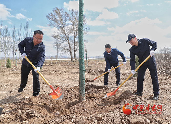 中國甘肅網(wǎng)和中鐵二十局市政公司黨員和職工到達(dá)泗水鎮(zhèn)植樹現(xiàn)場后,揮鍬鏟土,抬水澆樹,干的熱火朝天,全體人員按照分工,分組協(xié)作認(rèn)真種好每一棵樹,為當(dāng)?shù)靥硪荒ňG色。