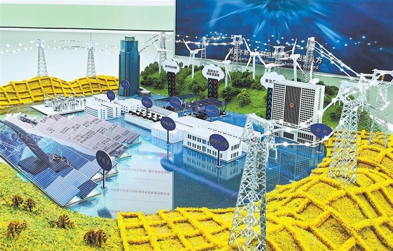 在國家電網展館展出的甘肅省武威市古浪縣八步沙“電沙成金”——沙漠能源生態(tài)圈品牌。本版圖片均由新甘肅·甘肅日報記者王占東攝