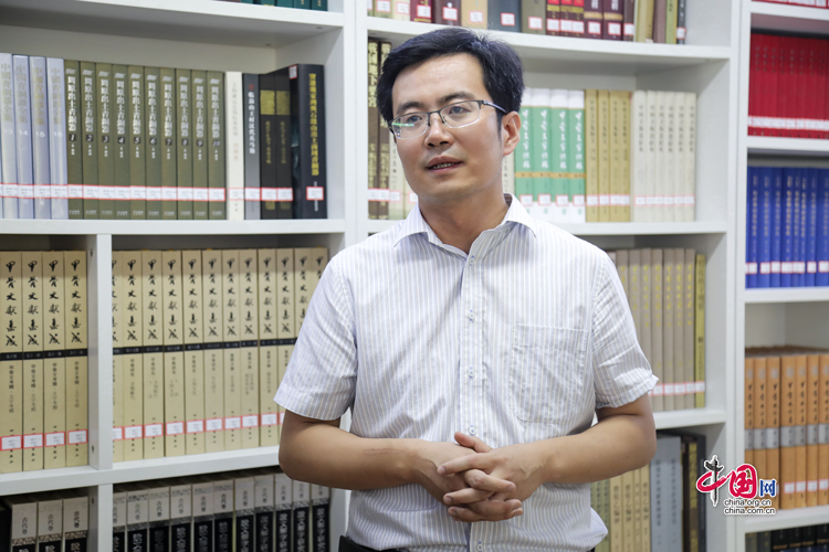 7月31日,西北師范大學(xué)歷史文化學(xué)院教授李迎春接受“簡牘中國”媒體團(tuán)的采訪。中國網(wǎng)記者 鄭偉 攝