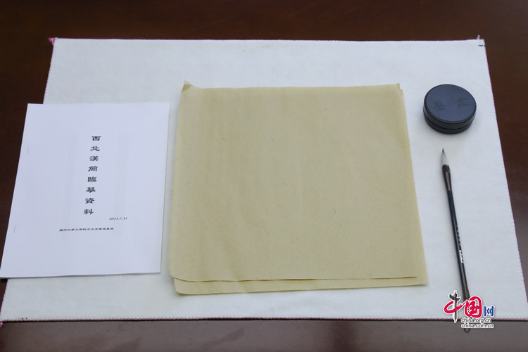 蘭州大學(xué)古文字學(xué)強(qiáng)基計(jì)劃同學(xué)臨摹簡牘所用的資料與文具(拍攝于7月31日)。中國網(wǎng)記者 鄭偉 攝