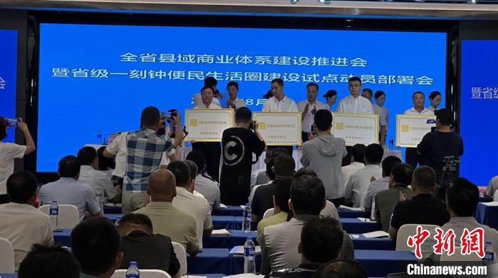 8月3日,甘肅省縣域商業(yè)體系建設(shè)推進(jìn)會(huì)暨省級(jí)一刻鐘便民生活圈建設(shè)試點(diǎn)動(dòng)員部署會(huì)在蘭州舉行。甘肅省商務(wù)廳為第二批“省級(jí)示范步行街”和“甘肅老字號(hào)”授牌。中新社記者 馮志軍 攝