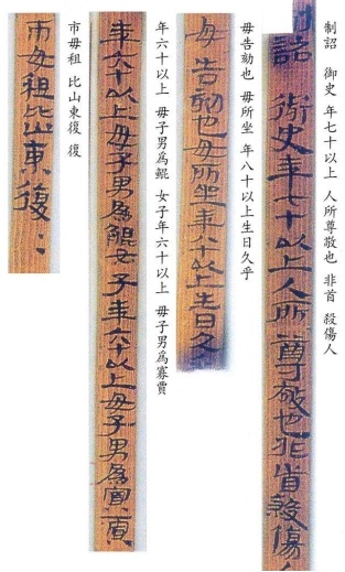 在甘肅省武威市磨嘴子、旱灘坡、五壩山漢墓出土的王杖以及“王杖十簡(jiǎn)”“王杖詔書令冊(cè)”簡(jiǎn)就是我國(guó)古代敬老養(yǎng)老制度的代表性實(shí)物見證。