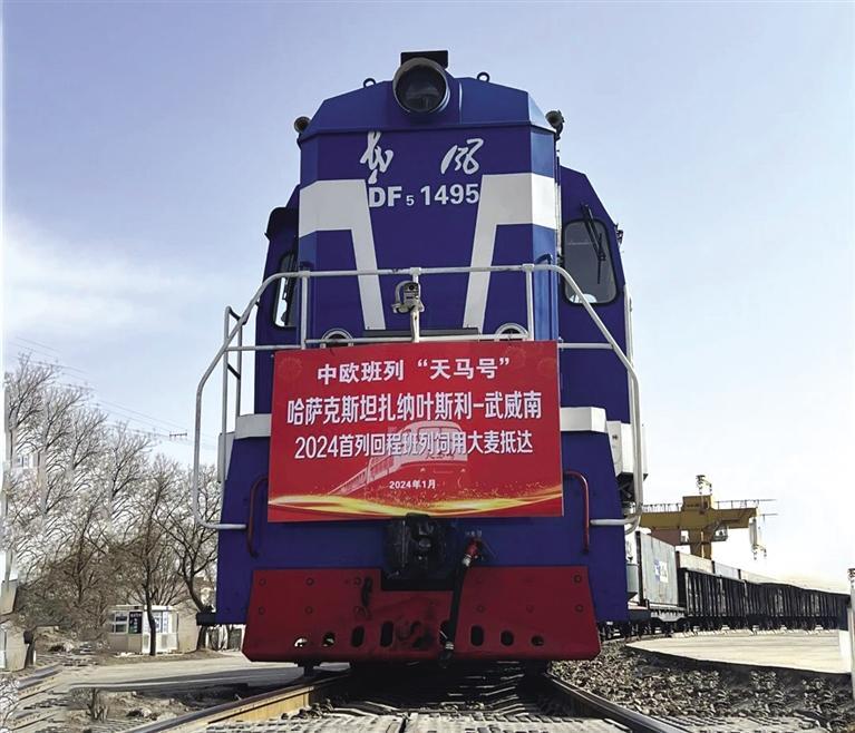 中國(guó)甘肅網(wǎng)1月18日訊 據(jù)蘭州晚報(bào)報(bào)道 日前,一列搭載62個(gè)集裝箱1600多噸,貨值406萬(wàn)元的哈薩克斯坦進(jìn)口糧飼回程班列抵達(dá)武威南站,這是今年中鐵蘭州局集團(tuán)公司蘭州貨運(yùn)中心首趟中歐進(jìn)口糧飼專(zhuān)列。此趟班列在蘭州貨運(yùn)中心、市商務(wù)局和金昌海關(guān)共同謀劃下,從哈薩克斯坦扎納葉斯利出發(fā),由阿拉山口入境,歷時(shí)8天,順利抵達(dá)武威南貨場(chǎng)。