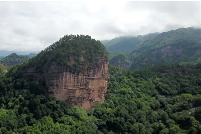麥積山石窟全景。新華社記者范培珅攝