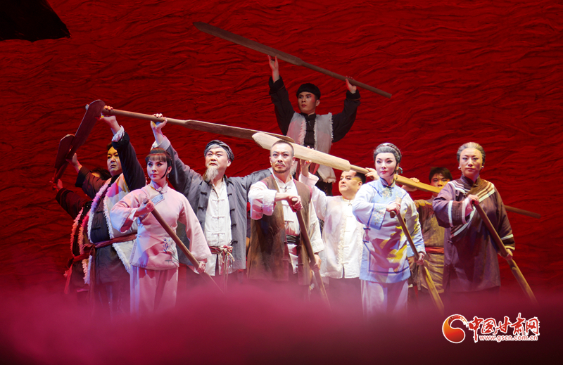 甘肅省隴劇院歷經三年精心打造的隴劇《大河東流》是國家藝術基金2024年度大型舞臺劇和作品創(chuàng)作資助項目。該劇以20世紀30年代末抗戰(zhàn)為背景,運用具有地方特色的隴劇形式,生動描繪了大西北黃河邊的一群筏客子在國家危難之際,如何摒棄個人恩怨,團結一致支援抗戰(zhàn),組成水上大型運輸隊,將大量物資安全送達抗戰(zhàn)前線,創(chuàng)造了“羊皮筏子賽軍艦”的傳奇故事。