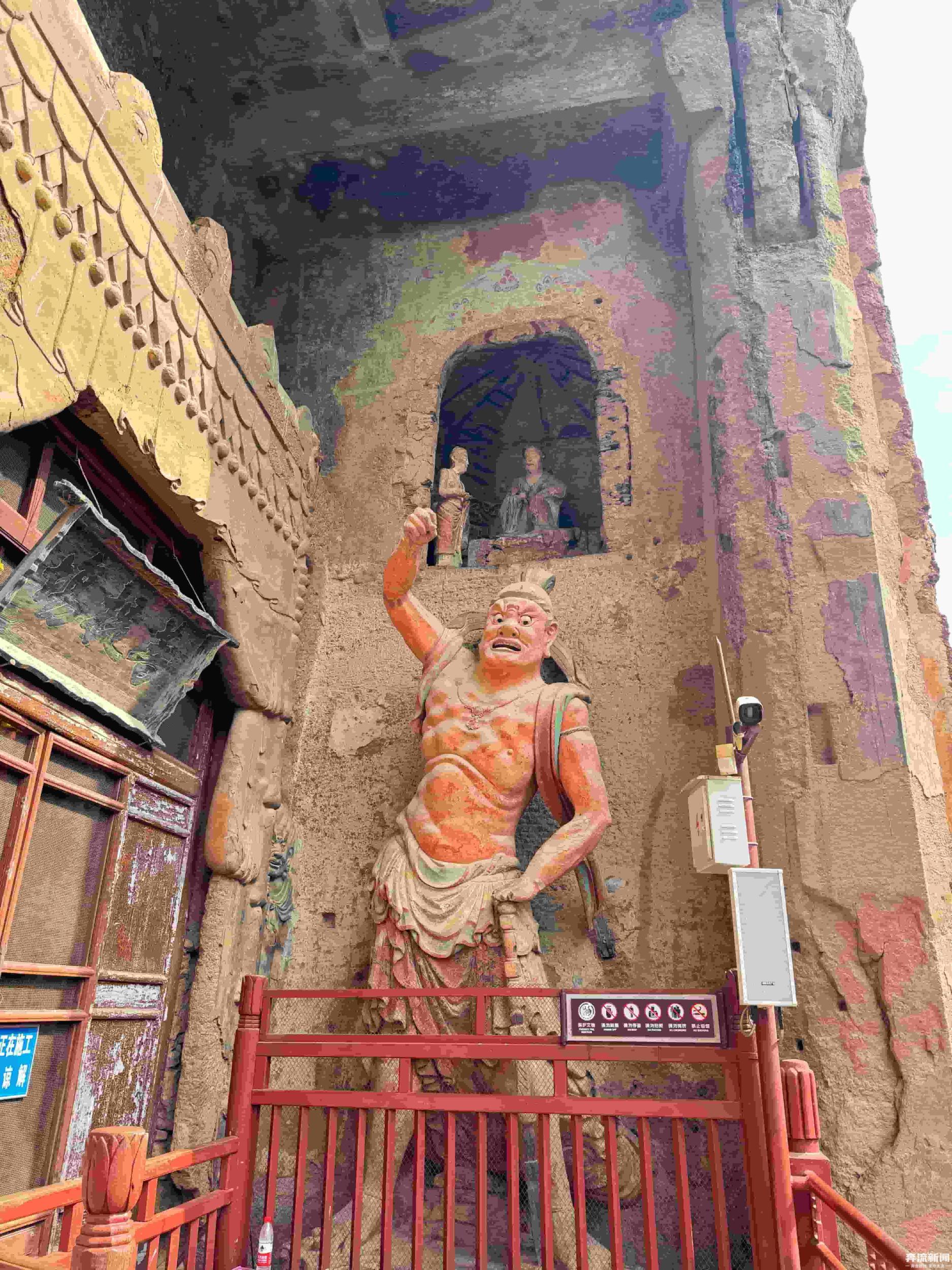 形如麥垛的山體之上,窟龕如同蜂窩般密密麻麻分布在絕壁之上。麥積山石窟始鑿于十六國后秦時(shí)期,現(xiàn)存大小窟龕221個(gè),造像3938件10632身,壁畫近1000平方米。