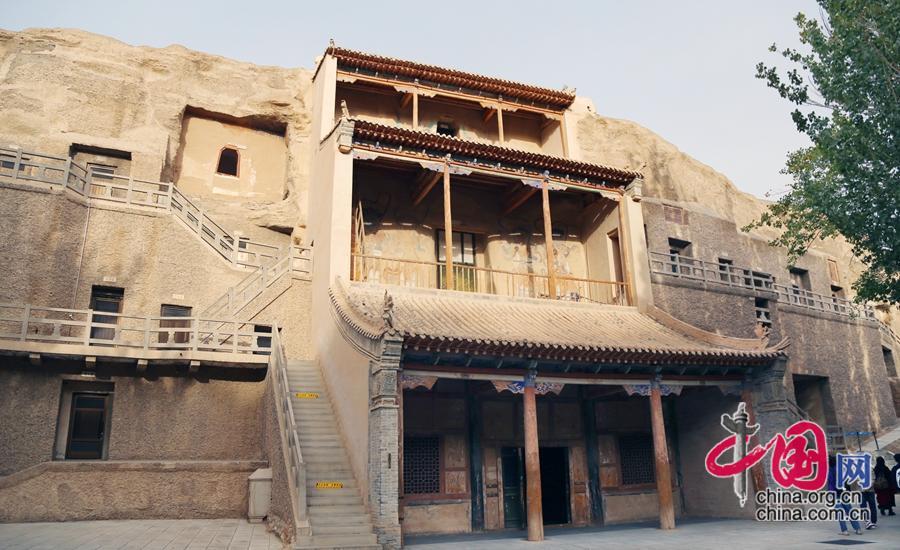據(jù)敦煌研究院資料顯示,石窟以彩塑為主體,四壁及頂均彩繪壁畫,地面漫鋪花磚,窟外有窟檐(或殿堂)、棧道,窟窟相通相連,是以石窟建筑、彩塑和壁畫三者合一的佛教文化遺存。