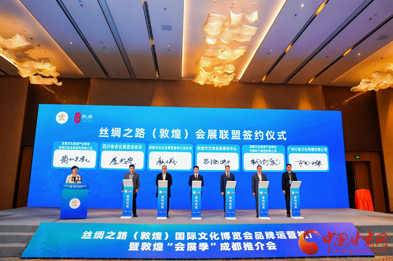簽約儀式后,還舉行了絲綢之路(敦煌)會展聯盟(成都)推廣中心揭牌儀式,標志著敦煌會展在成都及周邊地區(qū)推廣正式開啟,兩地會展合作進入常態(tài)化、機制化新階段。
