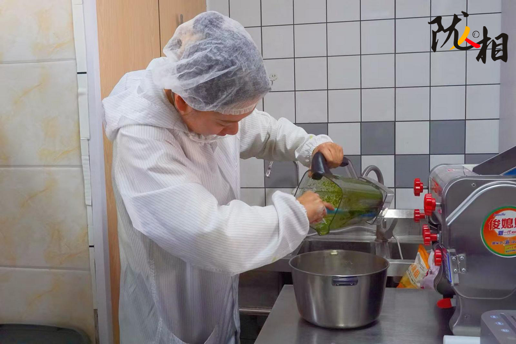 制作間里的蘇娜,眼神專注,一絲不茍。她拿出蒸熟的南瓜混著雞蛋、面粉揉出黃色面團(tuán),菠菜汁、紅曲米粉、可可粉分別調(diào)出綠、紅、棕等色彩,揉、搓、捏、拽、剪……普通面團(tuán)便披上“彩衣”,變身壽桃、醒獅、生肖等造型。