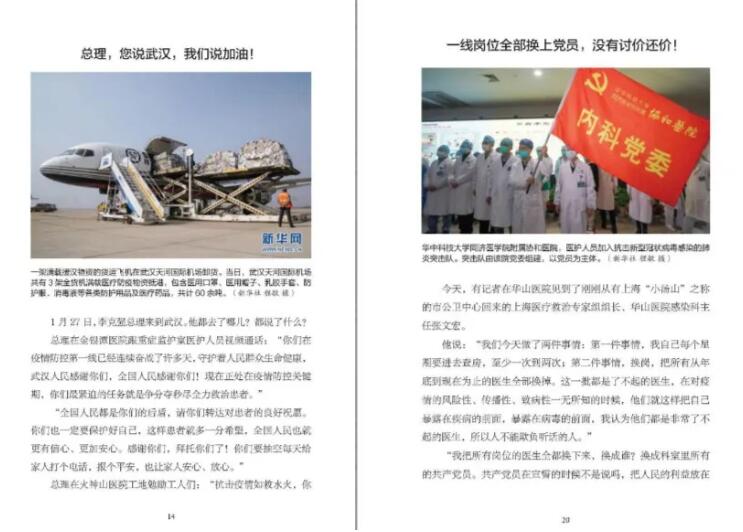 《2020:中國戰(zhàn)“疫”日志》一書以日志的形式,記錄了2020年1月23日到2月23日期間,中國每一天的戰(zhàn)“疫”故事:廣大醫(yī)護(hù)人員沒有遲疑、沒有退卻,和死神賽跑,與病毒抗?fàn)?,為生命接力;?jiān)持工作的人民警察、外賣員、環(huán)衛(wèi)工人、快遞員、志愿者……穿梭在城市的每個(gè)角落,守護(hù)著自己的城市;許多媒體記者冒著被感染的風(fēng)險(xiǎn),深入一線采訪報(bào)道……