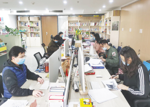 二十一世紀(jì)出版社集團南極熊出版公司的員工在工作中。