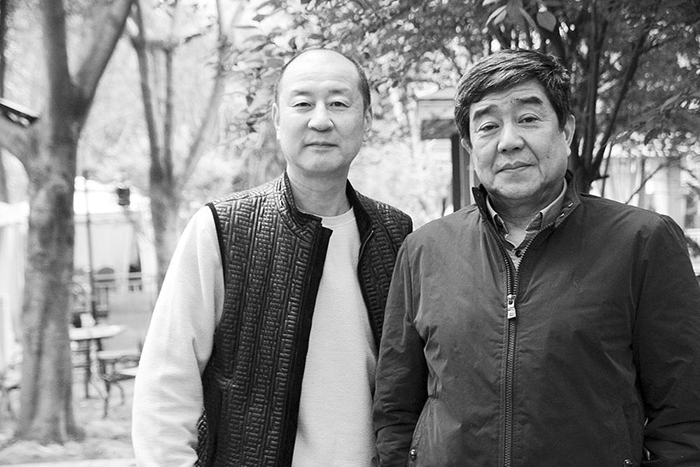 記者蔣藍(lán)與梁平合影