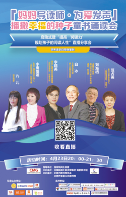 在國家新聞出版署指導下,由中國新聞出版?zhèn)髅郊瘓F、首都圖書館聯(lián)合央視頻、騰訊新聞、喜馬拉雅、云聽、當當網(wǎng)、未來網(wǎng)、快手等平臺主辦的“媽媽導讀師·為愛發(fā)聲”播撒幸福的種子童書誦讀會在世界讀書日當天啟動,啟動式以“提高閱讀力,規(guī)劃孩子的閱讀人生”直播分享會的形式進行。分享會上,嘉賓們圍繞“讀什么、怎么讀、讀懂書、從讀故事到編故事、成為閱讀達人”5個話題展開討論,希望能夠引導家庭重視親子閱讀,調(diào)動兒童閱讀的積極性、培養(yǎng)其閱讀習慣、教會其閱讀方法,促使其提高閱讀能力。