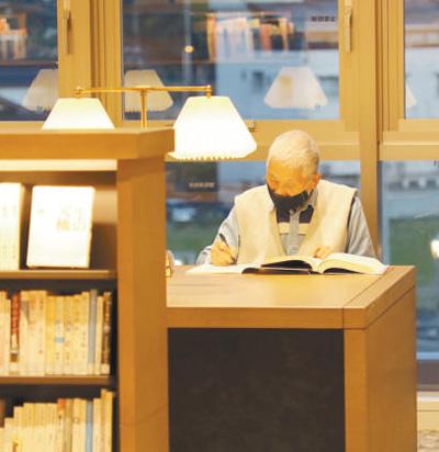 一位老年讀者正在日本高梁市圖書(shū)館內(nèi)閱讀。(劉軍國(guó) 攝)