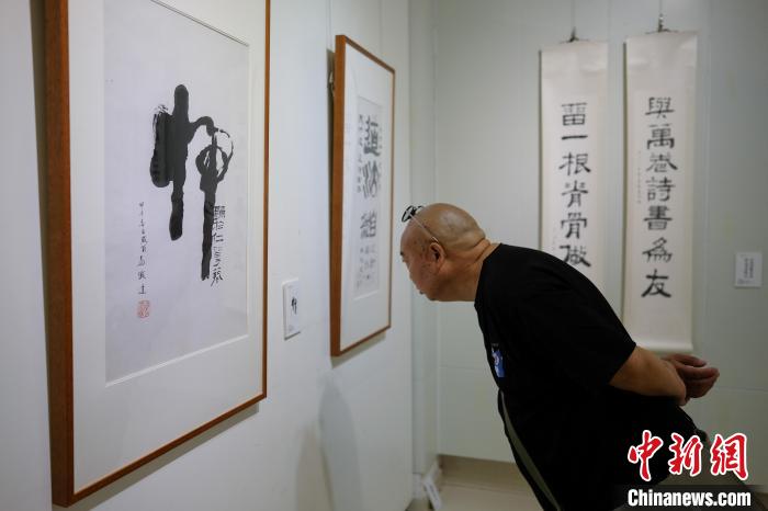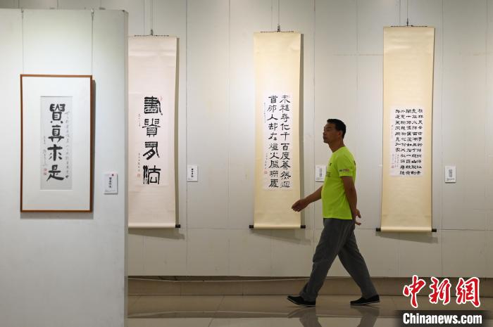 圖為觀眾參觀書法展?!『闻罾?nbsp;攝