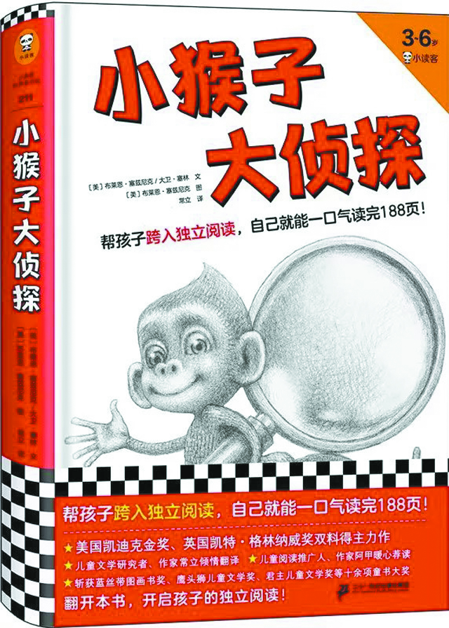 《小猴子大偵探》是本“欺騙性”很強(qiáng)的書,第一次讀到時,我真的被騙到了!聽說是《造夢的雨果》作者的新作,我完全沒理會這本書的介紹,就迫不及待地翻開來。好家伙,共有5章,差不多200頁,我心想,總得一兩個小時才能讀完吧。正當(dāng)我擺開架勢,準(zhǔn)備好好享受童書鬼才塞茲尼克和塞林的新作時,翻著翻著,大概六七分鐘吧,嗯——居然就翻到了最后一頁!天哪,我當(dāng)時想,這是怎樣的一本書??!不對,這真的是一本書嗎?
