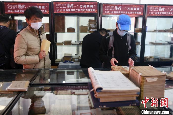 20日,“萬閱典藏”第三屆古舊書博覽會在北京潘家園舊貨市場開幕,圖為博覽會現(xiàn)場?!≈行律?nbsp;易海菲 攝