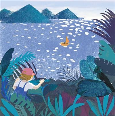 在遠(yuǎn)離故鄉(xiāng)的城市里,我的心無處可去。身處故鄉(xiāng)的時(shí)候,我們總眼望遠(yuǎn)方,“然而/那未知的風(fēng)景才是我向往的/哪怕它已落花滿地/哪怕它已人去樓空”。我喜歡這四句,因?yàn)樗欠N平靜而堅(jiān)決的向往,寥寥幾句卻直透人心。這首詩(shī)的配圖是樹叢中的孩子遠(yuǎn)眺平靜湖面上一艘小船,粼粼的湖面像藍(lán)灰色的操場(chǎng)一樣平實(shí),就像無聲的邀請(qǐng)。但當(dāng)我們走到遠(yuǎn)方,故鄉(xiāng)又會(huì)成為心頭揮之不去的念想。