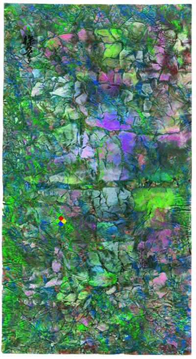 徐冬冬認(rèn)為,二十四節(jié)氣歷史悠久,可追至上古時(shí)代,蘊(yùn)含著對天地萬物生命起源的哲學(xué)認(rèn)知。中國抽象繪畫,畫的是生命本質(zhì)的生生滅滅。畫的是“空”,而不是“色”。他告訴記者,在創(chuàng)作這組畫時(shí),他會(huì)細(xì)致捕捉依次出現(xiàn)的時(shí)令、氣候、物候的變化,通過八識中的“眼、耳、鼻、舌、身、意”來感受大自然的氣息,然后用抽象的筆觸呈現(xiàn)在畫紙上。“我就像是一臺(tái)感應(yīng)器,每一個(gè)汗毛孔都在感受著天地的氣息。”徐冬冬說。作畫的宣紙經(jīng)過特殊處理,也有了肌理和紋路,色彩濃烈的畫作仿佛有了生命,似乎在呼吸伸展。