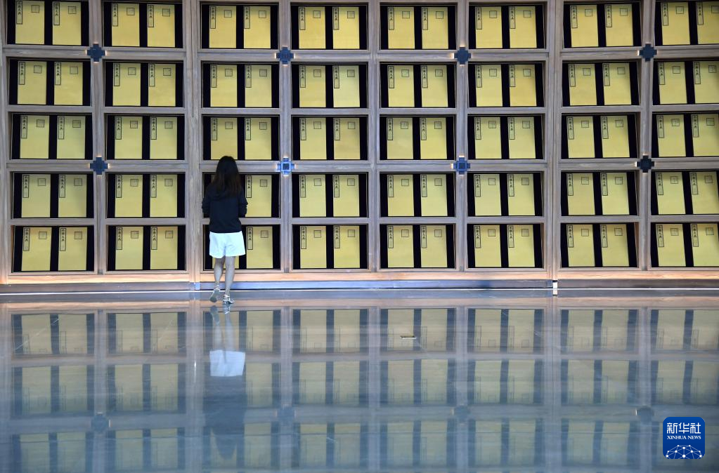 這是在北京拍攝的中國國家版本館中央總館內(nèi)的展覽陳設(shè)(7月23日攝)。