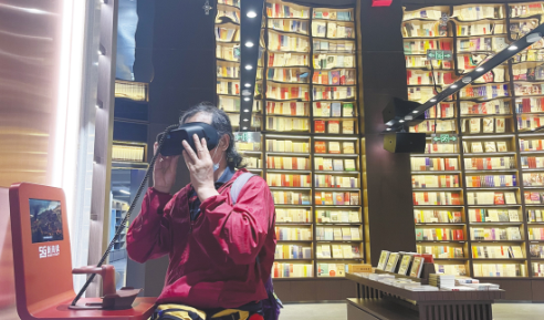 讀者在福州安泰書城體驗5G閱讀。 朱丹丹 攝
