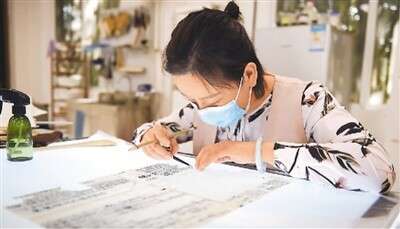 安徽博物院文物科技保護(hù)中心紙質(zhì)文物修復(fù)室的工作人員對(duì)古籍文物進(jìn)行修復(fù)。新華社記者 周 牧攝
