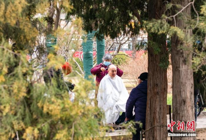 資料圖:北京市民在街頭休閑區(qū)理發(fā)。當(dāng)天是中國(guó)農(nóng)歷二月初二,民間有“二月二,剃龍頭”的傳統(tǒng)習(xí)俗,寓意辭舊迎新,帶來好兆頭。 中新社記者 侯宇 攝