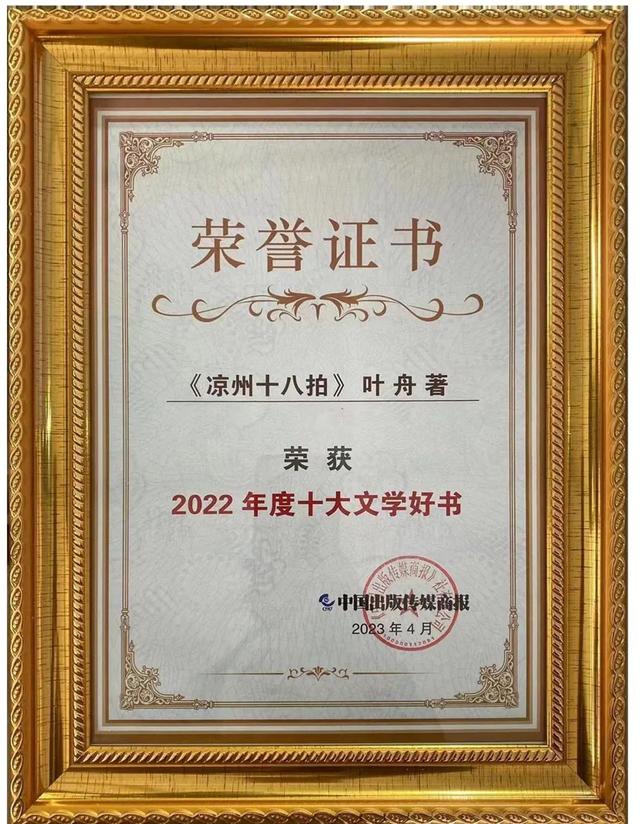 葉舟長篇小說《涼州十八拍》榮獲春風(fēng)悅讀榜年度白銀獎(jiǎng) 并入選2022年度十大文學(xué)好書