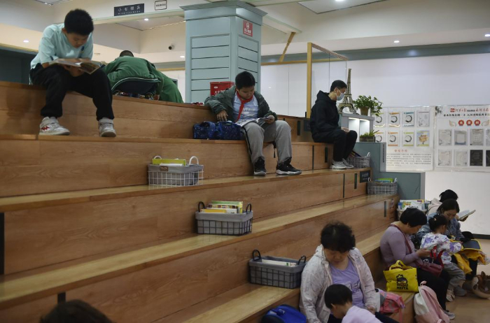 10月18日,小學(xué)生在鄭州市緯五路第一小學(xué)校園閱讀中心內(nèi)寫(xiě)作業(yè)。