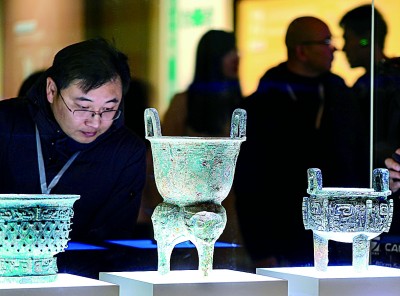 殷墟博物館新館展出的商代青銅器。安陽(yáng)市委宣傳部供圖