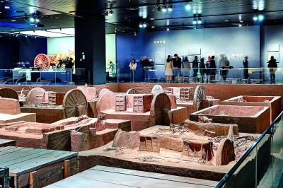在二樓展廳展出的名為“陶”的文物,形狀呈圓餅狀,表面微微凸起,密密麻麻,這是商朝人洗澡時(shí)的清潔用具。殷墟考古發(fā)掘工作中,發(fā)現(xiàn)一種車,車前俯身埋著兩個(gè)人,這很可能是一種人力車,文獻(xiàn)稱為“輦車”。在“車轔轔,馬蕭蕭”展廳,社科院考古所現(xiàn)場(chǎng)考古,把發(fā)掘過(guò)程展示給游客。