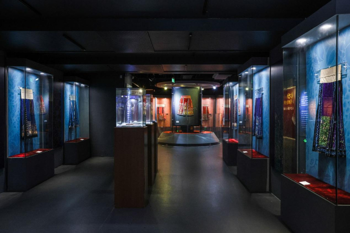 “衣生萬物 傳統(tǒng)重構(gòu)——五色華彩馬面裙”展覽探尋和呈現(xiàn)馬面裙的歷史以及中國(guó)古人的制衣智慧與美學(xué)風(fēng)尚,近百條傳統(tǒng)馬面裙實(shí)物及多件當(dāng)代創(chuàng)新設(shè)計(jì)將持續(xù)展出至7月18日。展覽運(yùn)用了“五行五色”中國(guó)傳統(tǒng)色彩觀念,將展區(qū)分為赤、藍(lán)、黃、白、黑五個(gè)正色板塊,以及綠和多彩(月華裙)等間色板塊。在展示方式上,傳統(tǒng)馬面裙以平面展示為主,當(dāng)代創(chuàng)新設(shè)計(jì)的馬面裙則以人臺(tái)的立體展示為主。